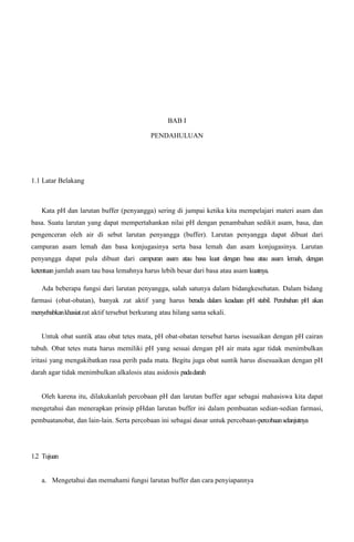 1. Percobaan membuat dan mengukur pH tiga jenis larutan buffer: sitrat, fosfat, dan borat-NaOH.
