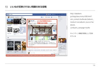 「いいね」が加算されるアドレス 先ほどの長いアドレスに対して「い いね」が発生している。 本来はhttp://datafarm. jp/blog/diary/entry-590.html? utm_content=bufferabc3e(以下 略)の赤字のURLにリンクが欲しい 2/6 2)