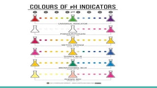 The document discusses acidity, basicity, pH, and buffer systems in the human body. It defines acids as having a high hydrogen ion concentration and bases as having a low hydrogen ion concentration. The blood needs to maintain its pH between 7.35-7.45. The lungs and kidneys help regulate pH through exchanging carbon dioxide and excreting acids and bases. The bicarbonate buffer system uses dissolved carbon dioxide, carbonic acid, and bicarbonate ions to neutralize changes in blood pH. Too much acid in the body leads to acidosis and symptoms like fatigue, while too much base causes alkalosis and issues like arrhythmias.