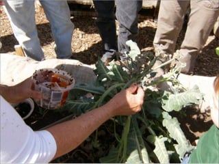 The Lafayette Library held a special program at the Lafayette Community Garden for children about bugs. The children made clay bugs and then went on a scavenger hunt to find real bugs and worms. They also planted potatoes and released ladybugs to eat aphids damaging a cabbage plant. The children were encouraged to take some friendly bugs home for their gardens. The library will return on April 20th for a composting demonstration and story time about how garbage can help gardens.