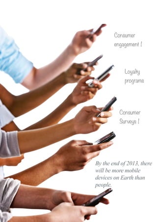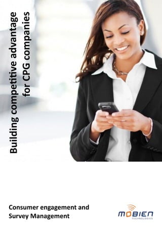 This document discusses how mobile devices can be used for consumer engagement and surveys by CPG companies. It describes how a mobile application framework called iNotify can integrate with content management systems to deliver personalized content like text, images, videos and coupons to users. iNotify also supports conducting dynamic surveys on mobile apps to collect user responses in real-time. The document provides an example workflow of how a CPG company could use iNotify and pre-built templates to build a scalable consumer engagement strategy around content, coupons and surveys on mobile.