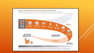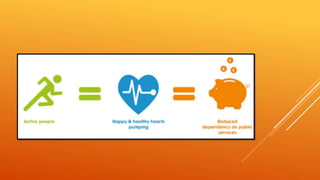 The document highlights the benefits of physical activity on emotional well-being and physical health, emphasizing that inactivity leads to higher healthcare costs and health risks. It presents the F.I.T.T. principle to guide individuals in structuring their exercise routines, recommending specific durations and intensities for various types of physical activity. Overall, it stresses the necessity of incorporating exercise into a healthy lifestyle to enhance quality of life and reduce the risk of diseases.