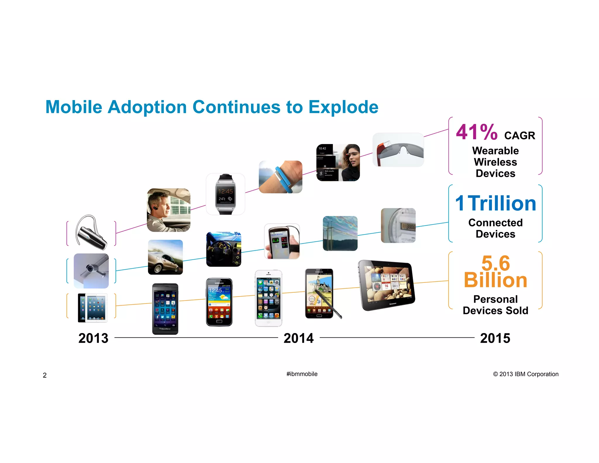 The document discusses the growing significance of mobile technologies across various industries, highlighting trends in mobile adoption, user behavior, and the transformation of business processes. It identifies characteristics of mobile strategy leaders, emphasizes the importance of integrating mobile into organizational structures, and outlines a four-part strategic approach to leveraging mobile for improved customer engagement and operational efficiency. Case studies illustrate successful implementations of mobile solutions in different sectors, showcasing the benefits of reduced costs, enhanced user experiences, and data-driven insights.