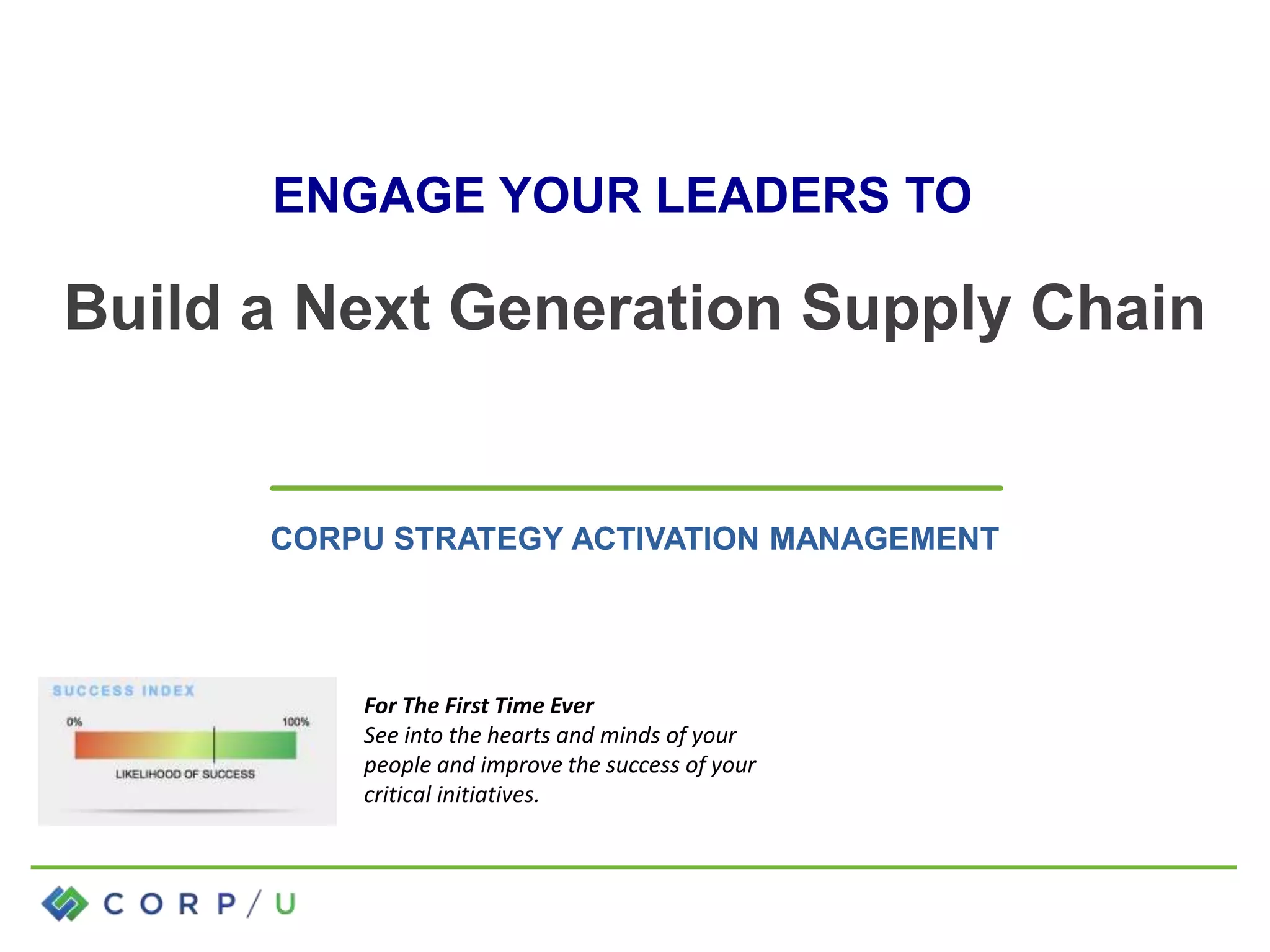 The document discusses the need for a next-generation supply chain strategy that adapts to increasing complexity and uncertainty in the global market. It emphasizes the importance of leveraging technology and collaborative efforts among teams to enhance supply chain performance and responsiveness to customer needs. Additionally, the document outlines various tools and frameworks to empower leaders and foster agile, data-driven decision-making in supply chain management.