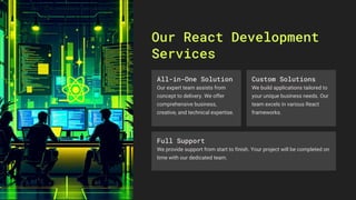 Looking for top-notch front-end development? Eminence Technology provides React Development Services that ensure high-speed, secure, and scalable apps. From single-page applications to enterprise-level solutions, we create feature-rich apps tailored to your business needs. Learn More!