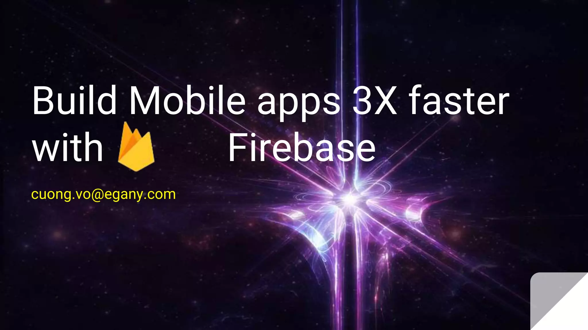 The document discusses building mobile apps 3x faster using Firebase, highlighting three essential components: Cloud Firestore for database management, Firebase Authentication for secure user sign-in, and Firebase Cloud Messaging for notifications. It emphasizes the cross-platform capabilities of Firebase and includes references to demos and collaboration opportunities. The document is targeted toward developers looking to streamline mobile app development.