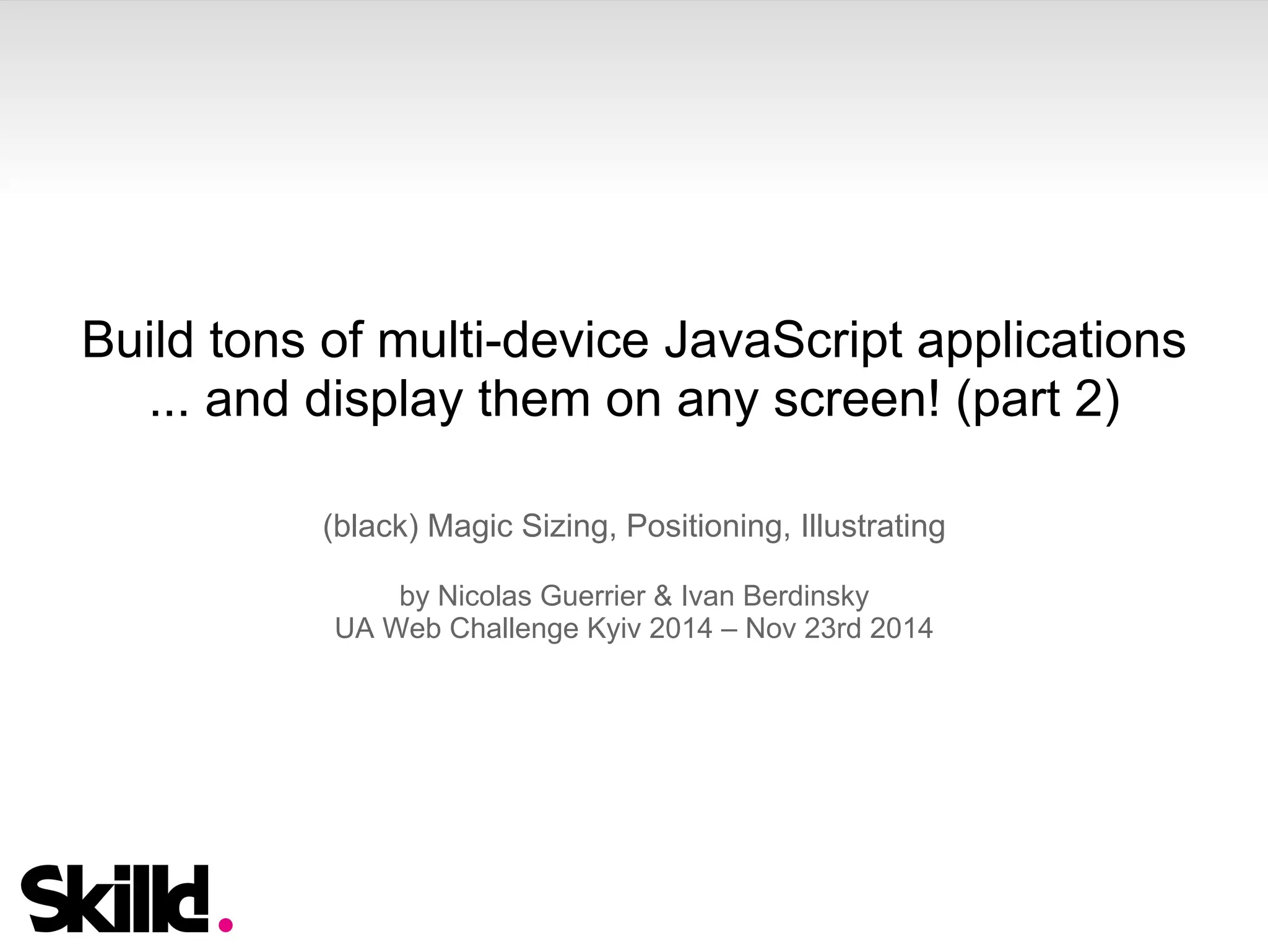 The document provides a comprehensive guide on building multi-device JavaScript applications, focusing on the use of Mustache.js for templating and CSS techniques like rem units and flexbox for responsive design. It emphasizes best practices for layout, sizing, and positioning, including the use of Sass mixins for compatibility. Additionally, it discusses the importance of preemptively considering design fluidity and the performance implications of using various techniques in web development.