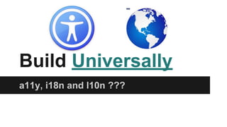 Google's mission is to make information universally accessible and useful for all people. This involves considerations for accessibility (a11y), internationalization (i18n), and localization (l10n). While many products focus on users in English-speaking countries like North America, there are large populations worldwide with disabilities or who speak other languages. Effective technology considers diverse needs through features like screen readers, braille displays, and language translation.