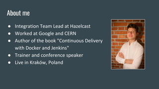 The document discusses different tools that can be used to build Kubernetes operators, including the Operator SDK, Helm, Ansible, Go, and operator frameworks like KOPF. It provides an overview of how each tool can be used to generate the scaffolding and implement the logic for a sample Hazelcast operator.