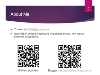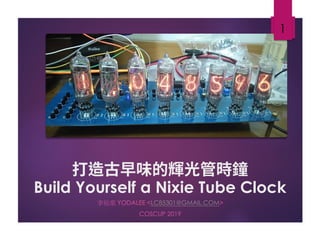 This document is a presentation by 李祐棠 on building a nixie tube clock, highlighting challenges related to sourcing components, high voltage circuits, and custom PCB design. It details solutions for controlling the nixie tubes including recommended ICs, microcontrollers, and PCB design tools. The presentation also provides links to resources for further information and open-source code related to the project.