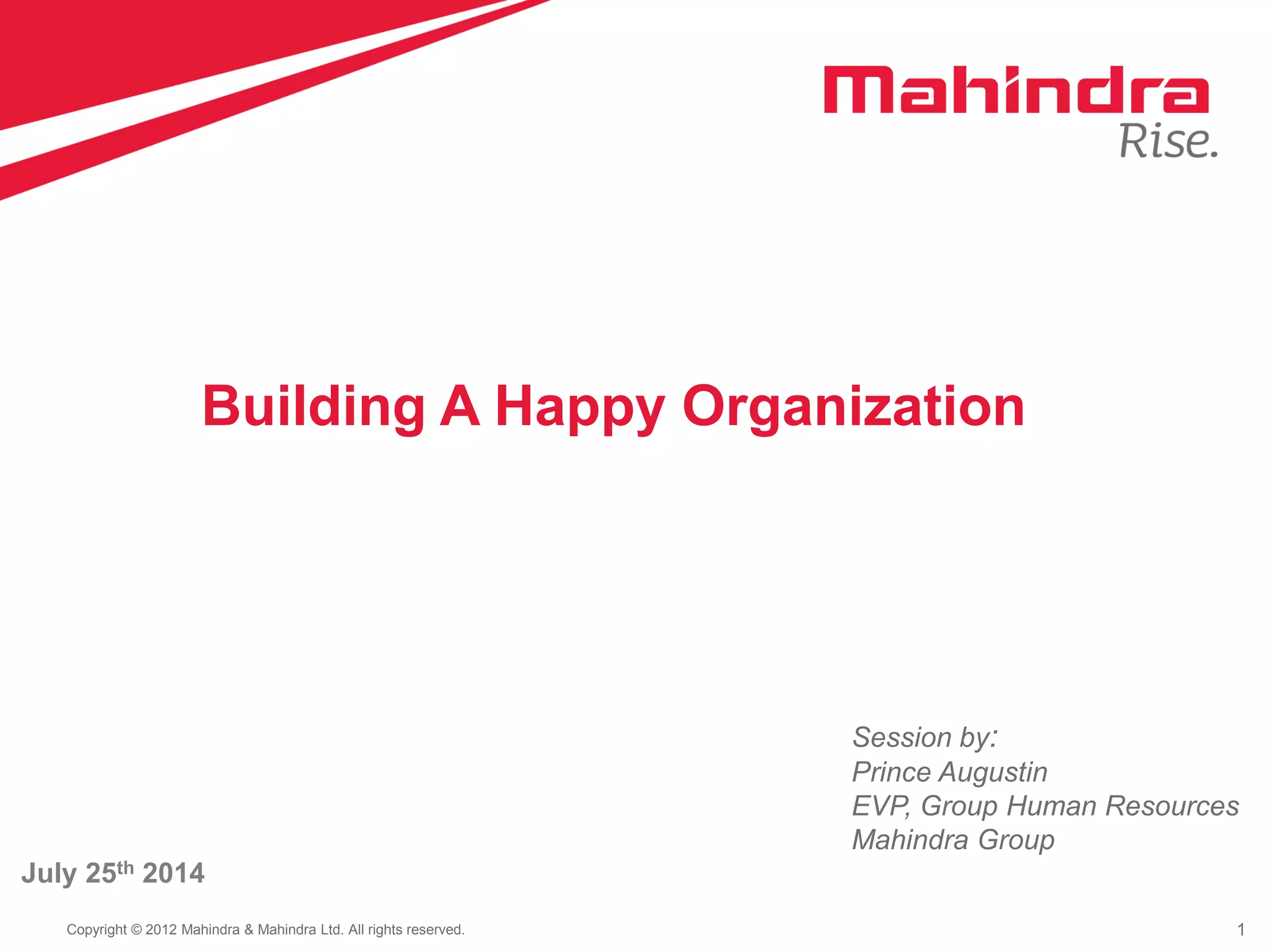 The document summarizes Mahindra & Mahindra's efforts to drive organizational culture change towards their "Rise" philosophy through aligning human resource processes. Key initiatives included developing leadership competencies, reengineering recruitment and onboarding using competency-based approaches, launching internal communication platforms like the Rise portal, and conducting workshops to socialize the changes across 500+ senior leaders between 2010-2012. The goal was to transition Mahindra's culture from risk-averse to one that challenges conventions and drives positive change, in line with their new core purpose.