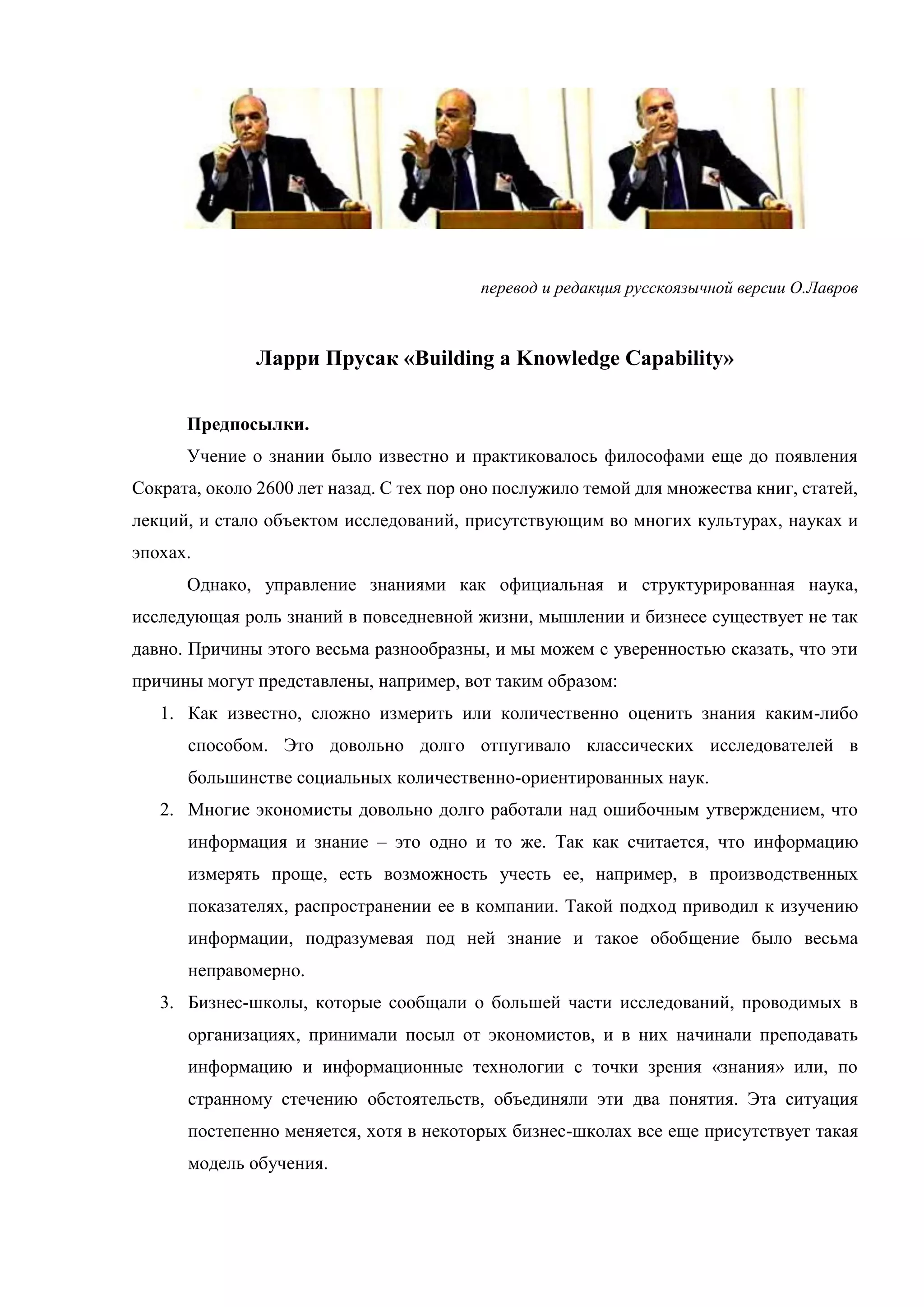 Документ обсуждает эволюцию управления знаниями (knowledge management) как важной дисциплины, которая занимается эффективным использованием знаний в бизнесе и повседневной жизни. Он подчеркивает сложность измерения и оценки знаний, а также важность различения явного и неявного знания в контексте формирования корпоративной практики. Практики управления знаниями включают развитие, сохранение и передачу знаний, что становится особенно актуальным в условиях глобализации и технологических изменений.