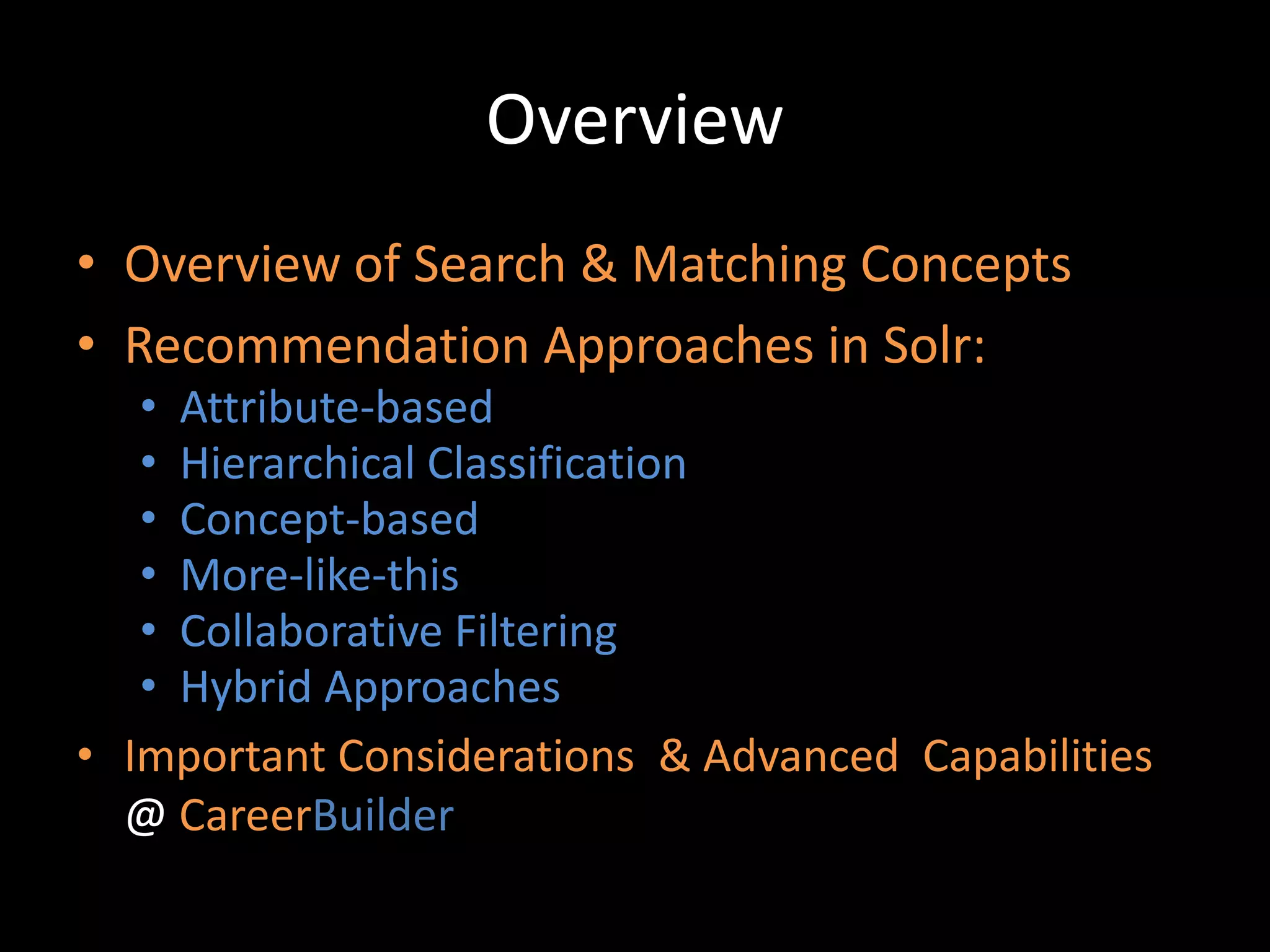 The document presents an overview of building a real-time recommendation engine using Solr, covering various recommendation approaches such as attribute-based, collaborative filtering, and hybrid methods. It emphasizes the importance of recommendations for user engagement and provides specific examples and considerations for implementing them effectively at CareerBuilder. Key takeaways include leveraging existing data in Solr for real-time recommendations and recognizing their potential value beyond traditional search capabilities.