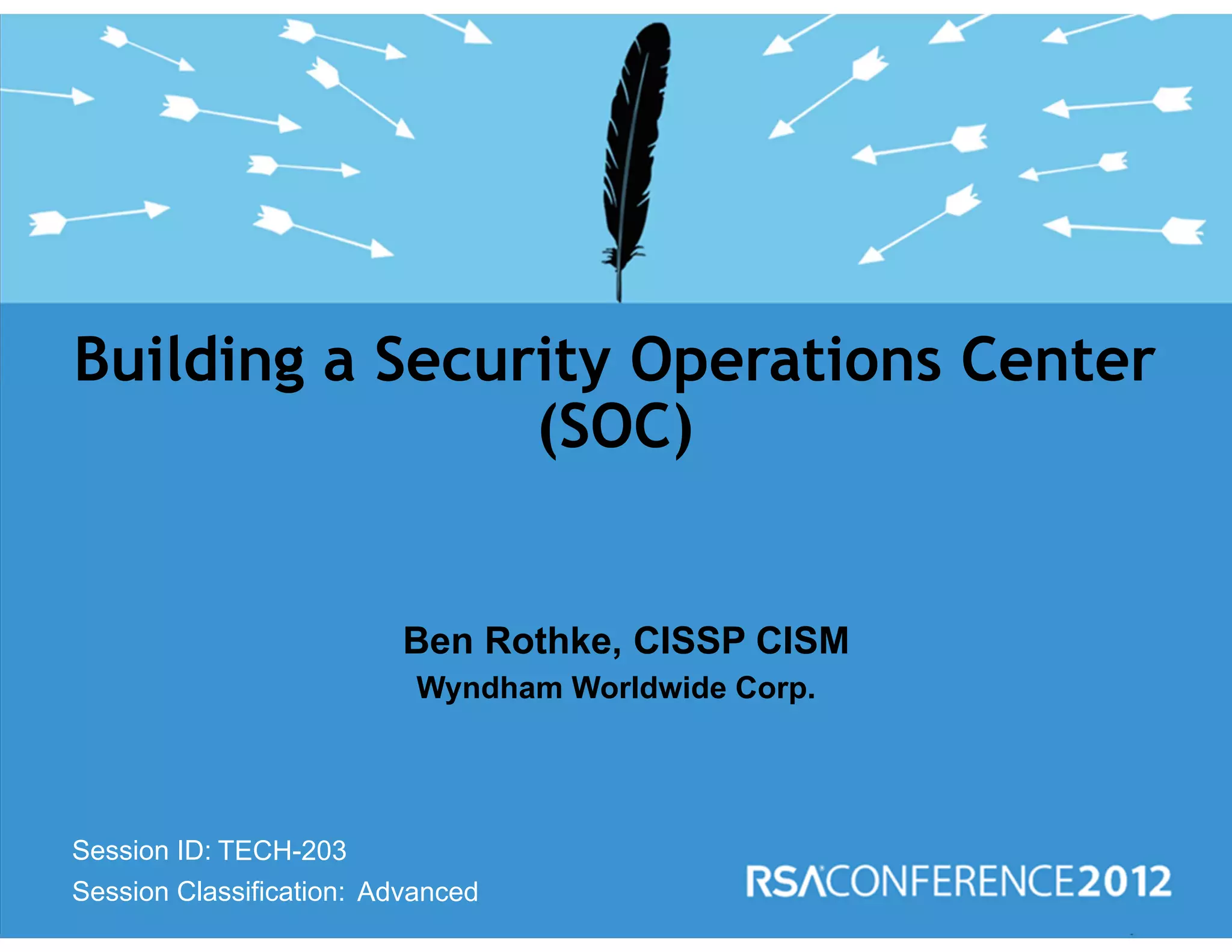 Ben Rothke presented on building a Security Operations Center (SOC). He discussed the need for a SOC due to the large amounts of security data organizations face. A SOC provides continuous monitoring, protection, detection and response against threats. It is the nucleus of security operations. Rothke outlined the components and functions of an effective SOC, and discussed deciding whether to build an internal SOC or outsource to a managed security service provider. He provided questions to consider for each approach to help organizations determine the best option.
