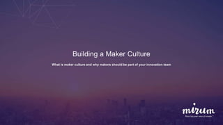 The document discusses the concept of maker culture and its importance in fostering innovation, emphasizing that anyone can participate in making and learning through doing. It highlights the value of accepting failure as part of the creative process and encourages the creation of environments where maker culture can thrive. Ultimately, it stresses that committed individuals can drive significant change in the world.
