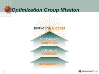 The document discusses developing a marketing analytics platform to optimize marketing campaigns and measure sales response. It involves: