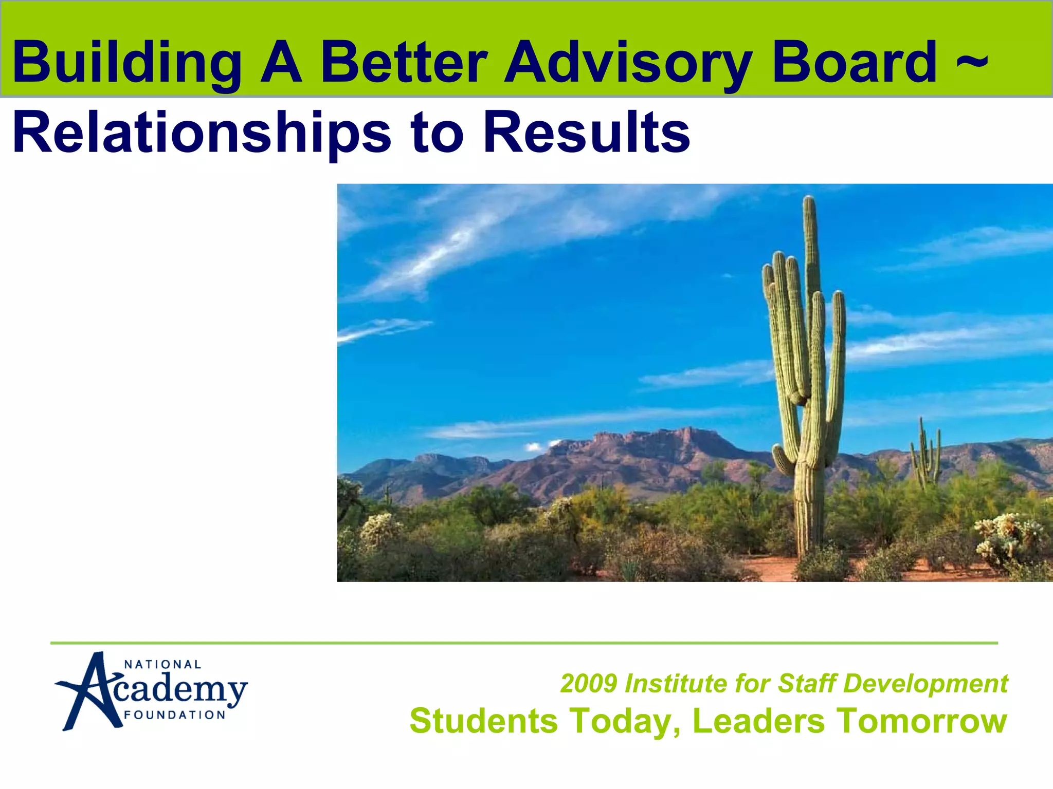 This document discusses building better advisory boards and strengthening relationships to achieve results. It provides an overview of NAF advisory boards in Seattle public schools, challenges they previously faced, and goals and strategies for improvement. These include broadening membership, increasing member participation, developing strategic plans, expanding funding opportunities, and succession planning to build more effective boards focused on goals, integrity, and work.