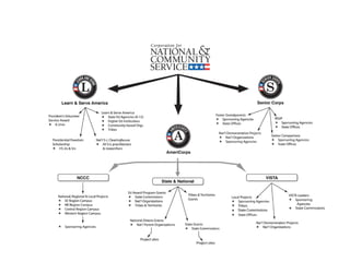 The document outlines the mission and operations of the Corporation for National and Community Service (CNCS), which aims to improve lives and strengthen communities through volunteerism, focusing particularly on low-income populations. It details the AmeriCorps VISTA program's goals, criteria for project sponsorship, available resources, and various initiatives aimed at addressing poverty and empowering communities. The document also highlights opportunities for volunteers, benefits of serving, and various local organizations involved in the program across Kentucky.