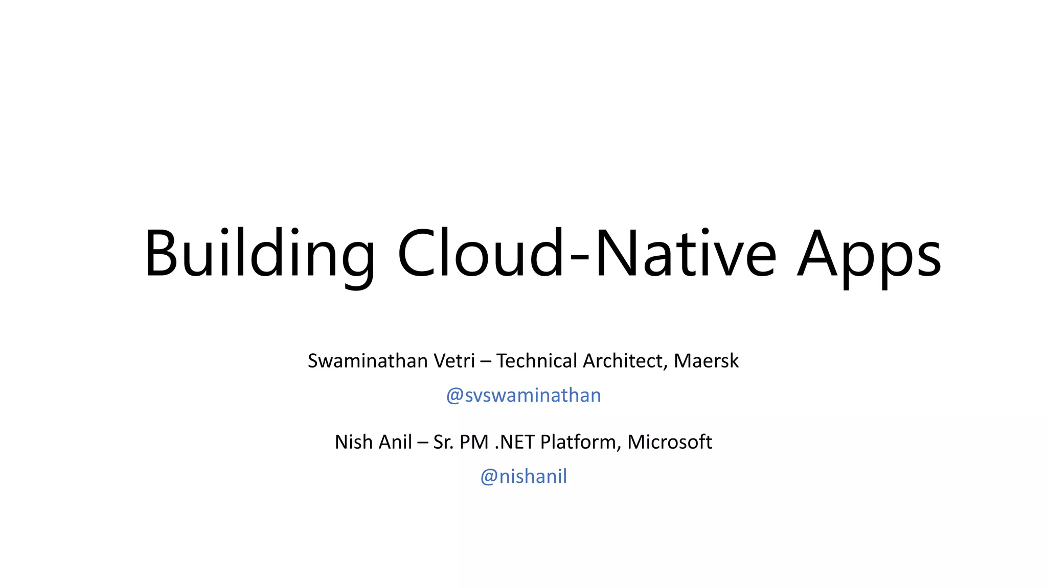This document discusses building cloud-native applications using microservices architecture on the .NET platform. It covers topics like leveraging containers and container orchestrators like Kubernetes, implementing common microservices patterns for communication, resiliency, and health checks. It also promotes the 12 factor app methodology and references resources for getting started with microservices on .NET including sample code. Case studies are provided of companies successfully using microservices at scale like Netflix, Uber, and WeChat.