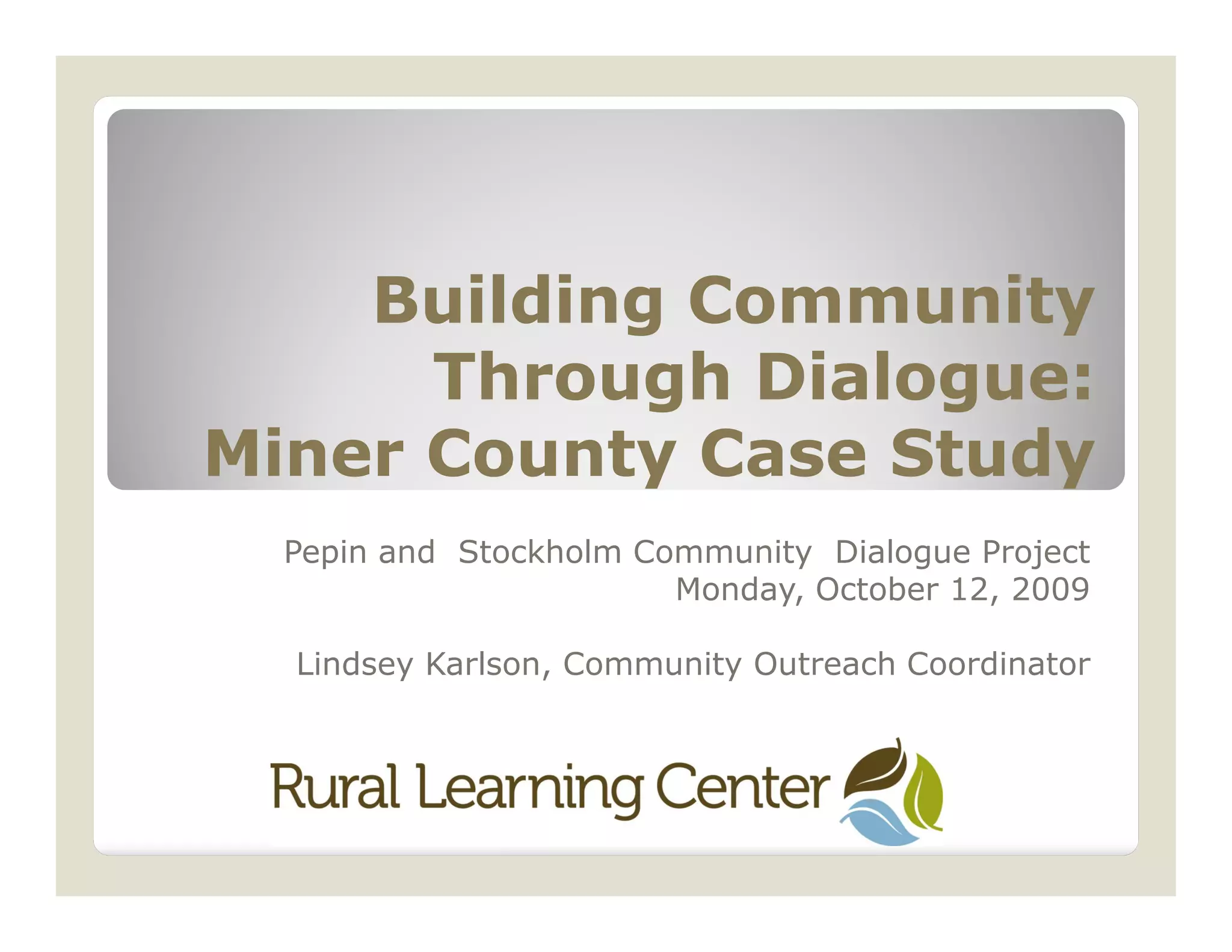 This document summarizes a case study of community revitalization efforts in Miner County, South Dakota between 1996-2009. It describes how: