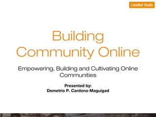 The document presents a framework for building and empowering online communities, focusing on relationships rather than tools. Key steps include understanding the audience, aligning organizational goals with online objectives, and selecting effective tools for engagement and support. The process emphasizes continuous measurement and evaluation of interactions and community impact.