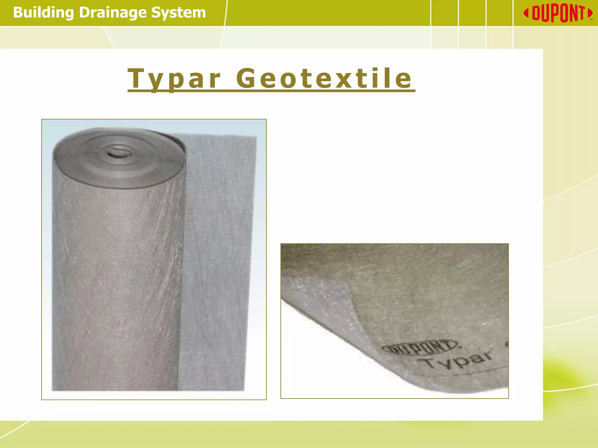 The document discusses the use of Typar geotextiles in building drainage systems. It explains that Typar separates soil from aggregate stones in drainage systems, preventing clogging. Typar has properties like tensile strength and puncture resistance that make it effective at maintaining the integrity of drainage systems. The document also provides examples of projects in Pakistan where Typar geotextiles have been used for drainage.