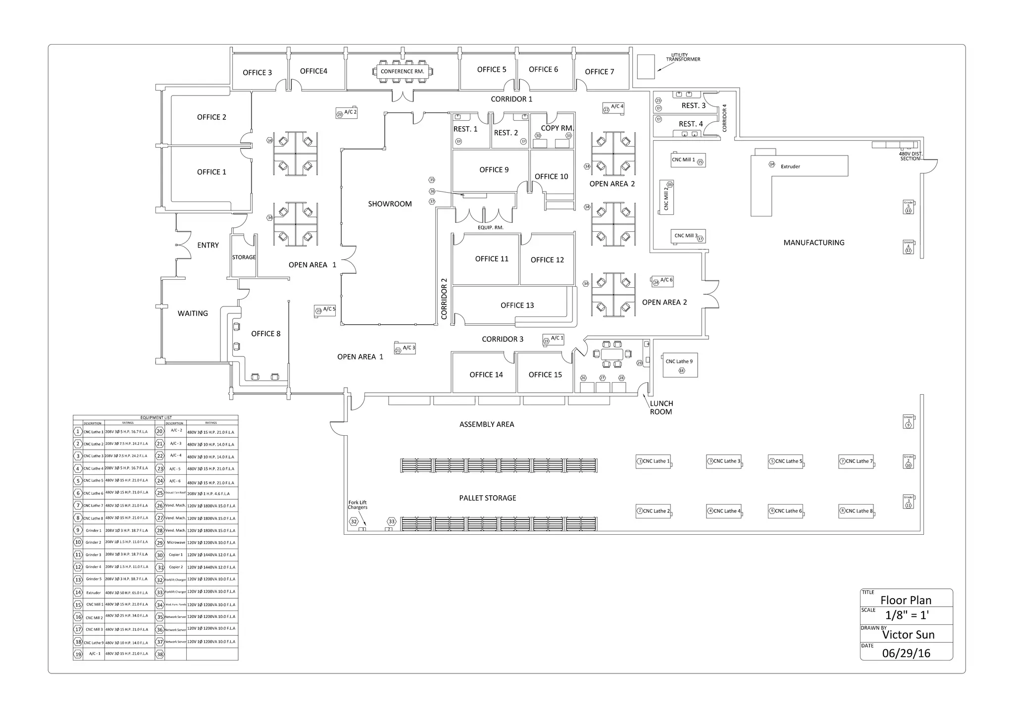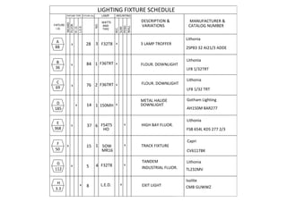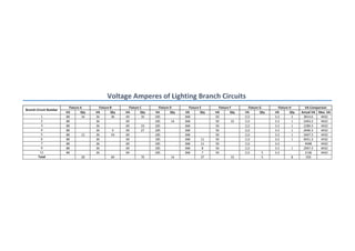 This document appears to be listing fixture types and maximum allowances for a panel P1. It includes lighting for a showroom and lighting for an open east area. In just 3 sentences or less, it provides information on fixture types and maximum totals for two spaces under panel P1.