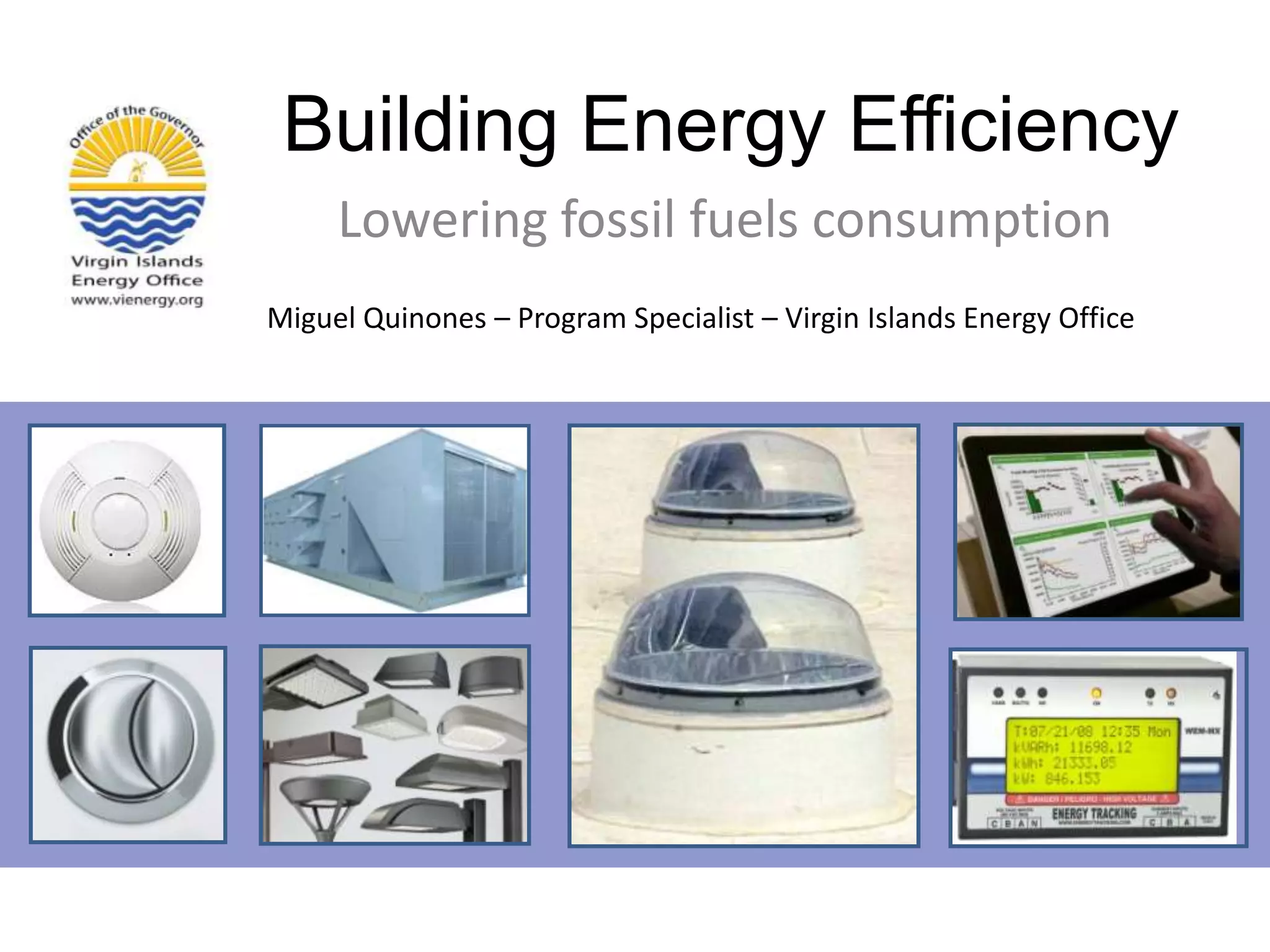 This document discusses building energy efficiency and lowering fossil fuel consumption. It provides information on how much power different appliances and systems use, as well as strategies to reduce energy consumption through daylighting, water and insulation improvements, and switching to more efficient HVAC and lighting systems. Variable refrigerant flow HVAC systems and LED lighting are highlighted as more efficient options. The document emphasizes the importance of monitoring energy use to reduce waste and lower costs over the lifetime of buildings and equipment.