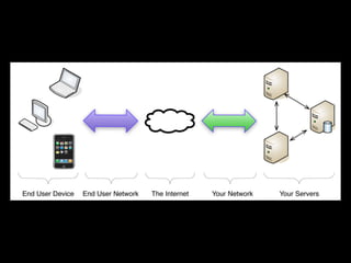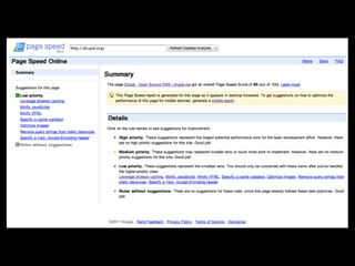 The document discusses how websites are getting slower and larger in size, negatively impacting the user experience. It notes that by 2015, mobile internet usage will surpass desktop usage. Users expect fast loading mobile sites. The document provides several techniques to optimize website performance, such as image and code minification, compression, caching, reducing connections and HTTP requests, image sprites, and optimizing for mobile hardware constraints.