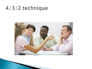 Oral communication is important for developing students' proficiency and communicative competence. Developing fluency requires components like pronunciation, suprasegmental teaching, and combining approaches. Students need constant exposure and practice to build fluency. There are three modes of practice: imitation, rehearsal, and extemporaneous speech which can increase speaking rate and reduce hesitations. Developing fluency also involves selecting discussion topics, giving peer feedback, and limiting teacher interference.