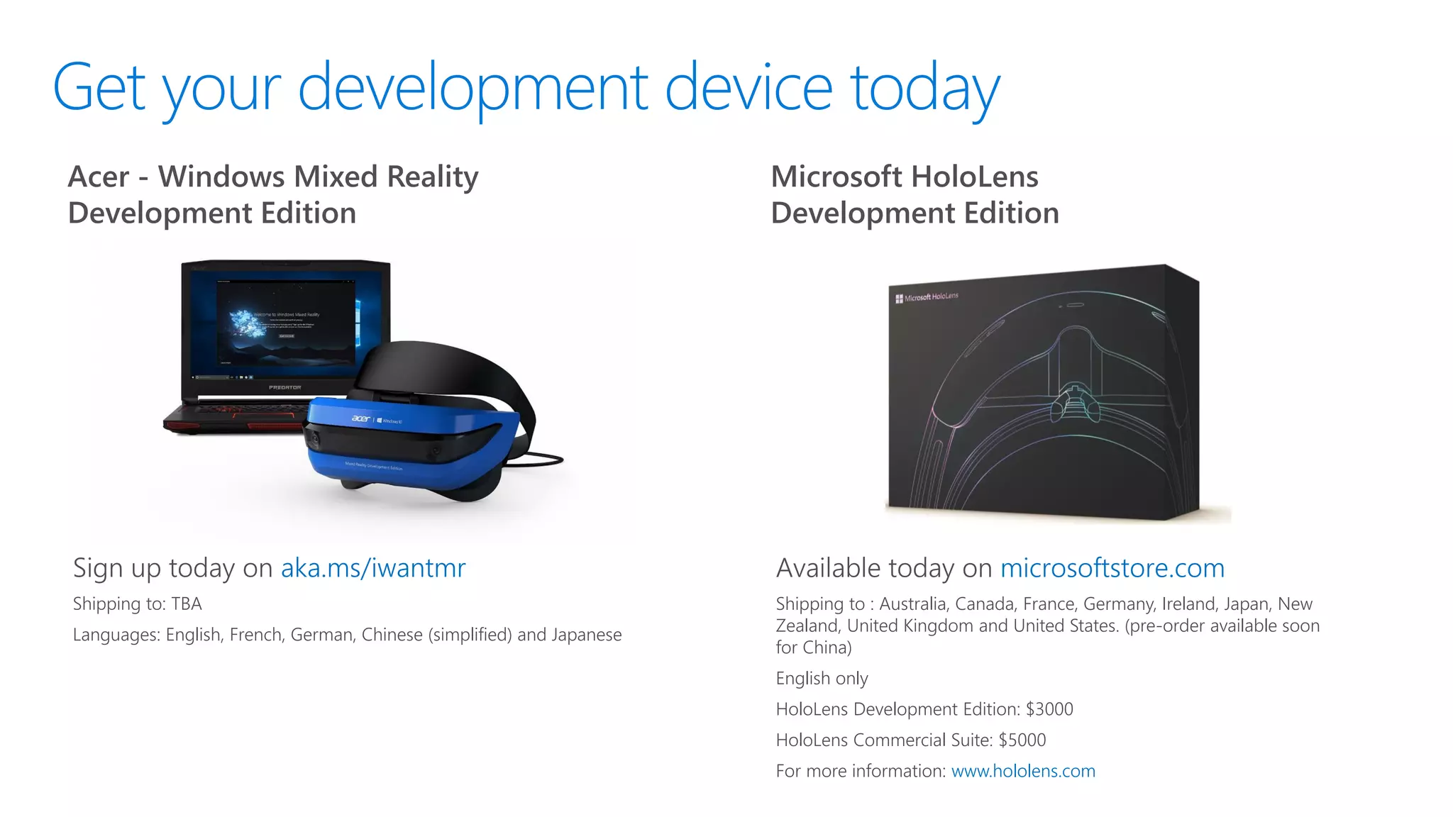 The document discusses building holographic experiences using the Holotoolkit for Unity and explains mixed reality concepts, hardware requirements, and the capabilities of Microsoft's HoloLens. It highlights various tools, resources, and community support for developing mixed reality applications, including tutorials and open-source projects. The HoloLens development editions are also detailed, showcasing their pricing and shipping information for different countries.