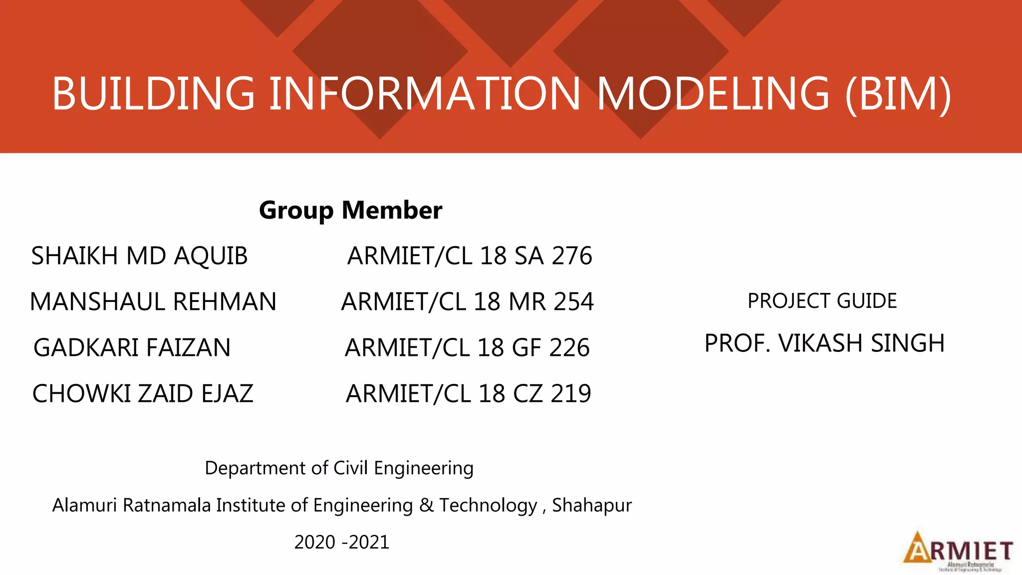 Building information modeling (BIM) is a process that involves creating an intelligent 3D model of a building to enable coordination and simulation throughout the project lifecycle. BIM aims to address problems in the construction industry like poorly coordinated designs, cost overruns, and claims and litigation. It involves developing a digital information model that can be shared and updated by stakeholders during planning, design, construction, operation, and maintenance. BIM improves collaboration and helps reduce errors, rework, and delays compared to traditional 2D drafting methods.