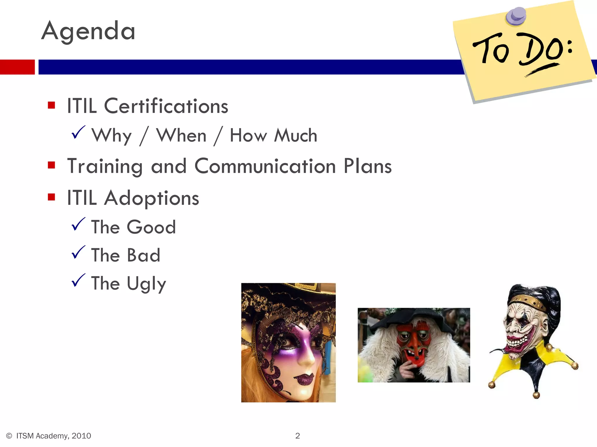 The document discusses IT Infrastructure Library (ITIL) training, its benefits, and certification processes. It highlights the importance of understanding when to implement ITIL and the resources needed for effective adoption, while also addressing the challenges that organizations may face. It includes details about various certification levels, training options, and the importance of aligning training with organizational needs.