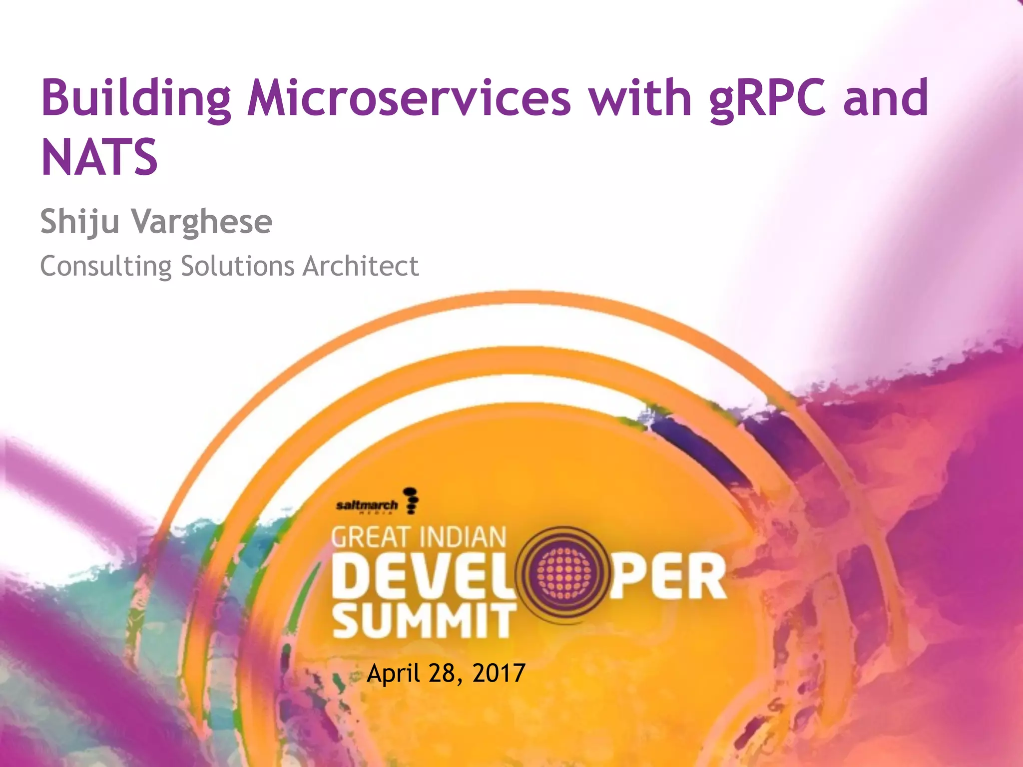This document discusses building microservices with gRPC and NATS. It begins with an introduction to microservices architecture and challenges in communication between microservices. It then covers using gRPC and Protocol Buffers to build high performance APIs, as well as using NATS for an event-driven architecture with publish-subscribe messaging. Code demos are provided for gRPC and NATS. The document concludes with a discussion of event sourcing and various messaging patterns when using NATS.