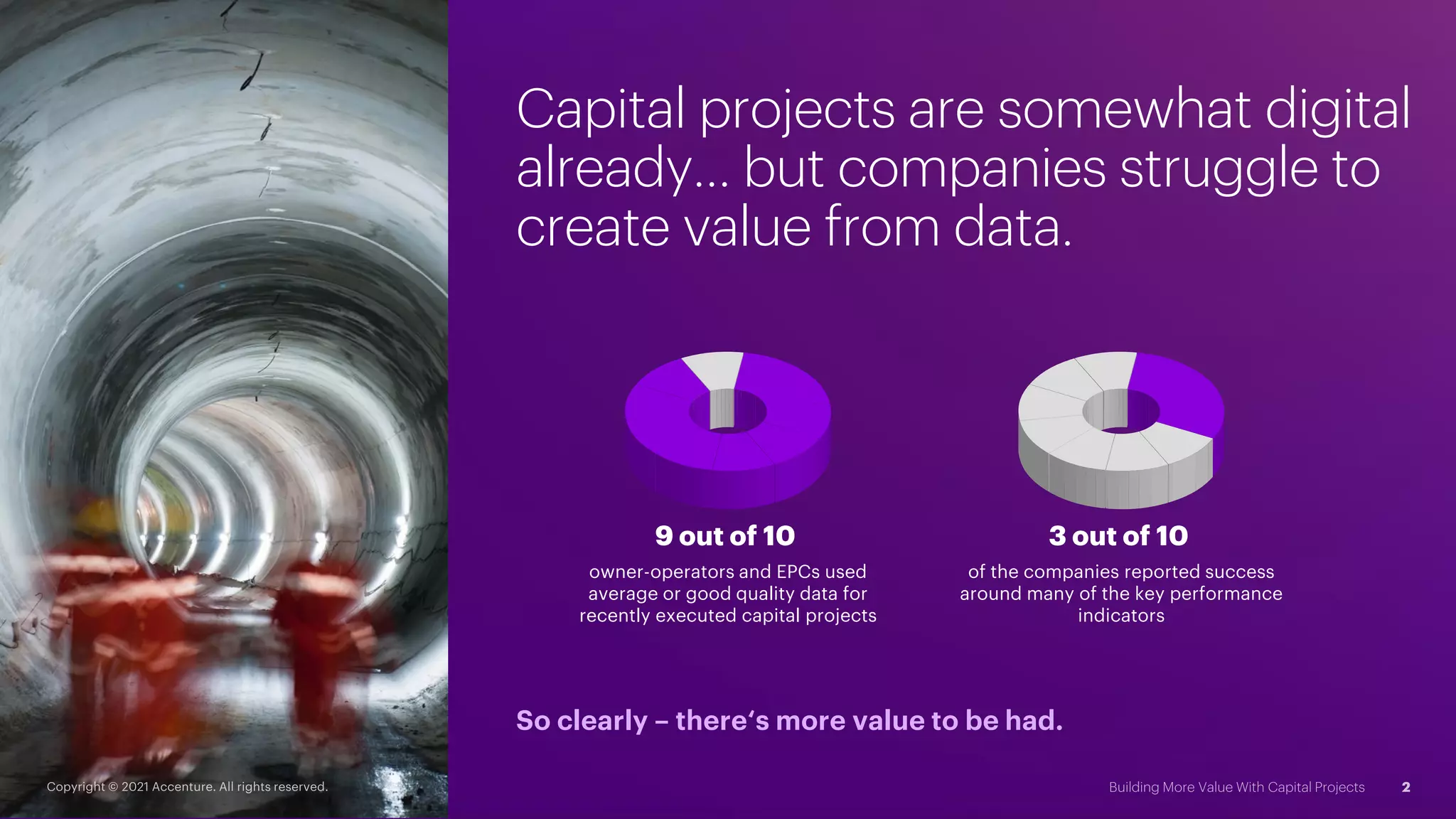 1) Capital projects generate more value when companies share and analyze data effectively, but most struggle to do so.