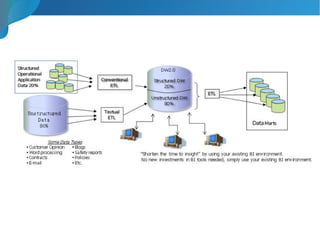 The document presents a discussion on evolving data warehousing strategies, exploring traditional, NoSQL, and hybrid models to address modern data challenges. It emphasizes the need for agile frameworks that integrate both structured and unstructured data, facilitating faster insights and improved access for data science. The conclusion calls for businesses to adapt to evolving demands for quicker turnaround and enhanced analytical capabilities.