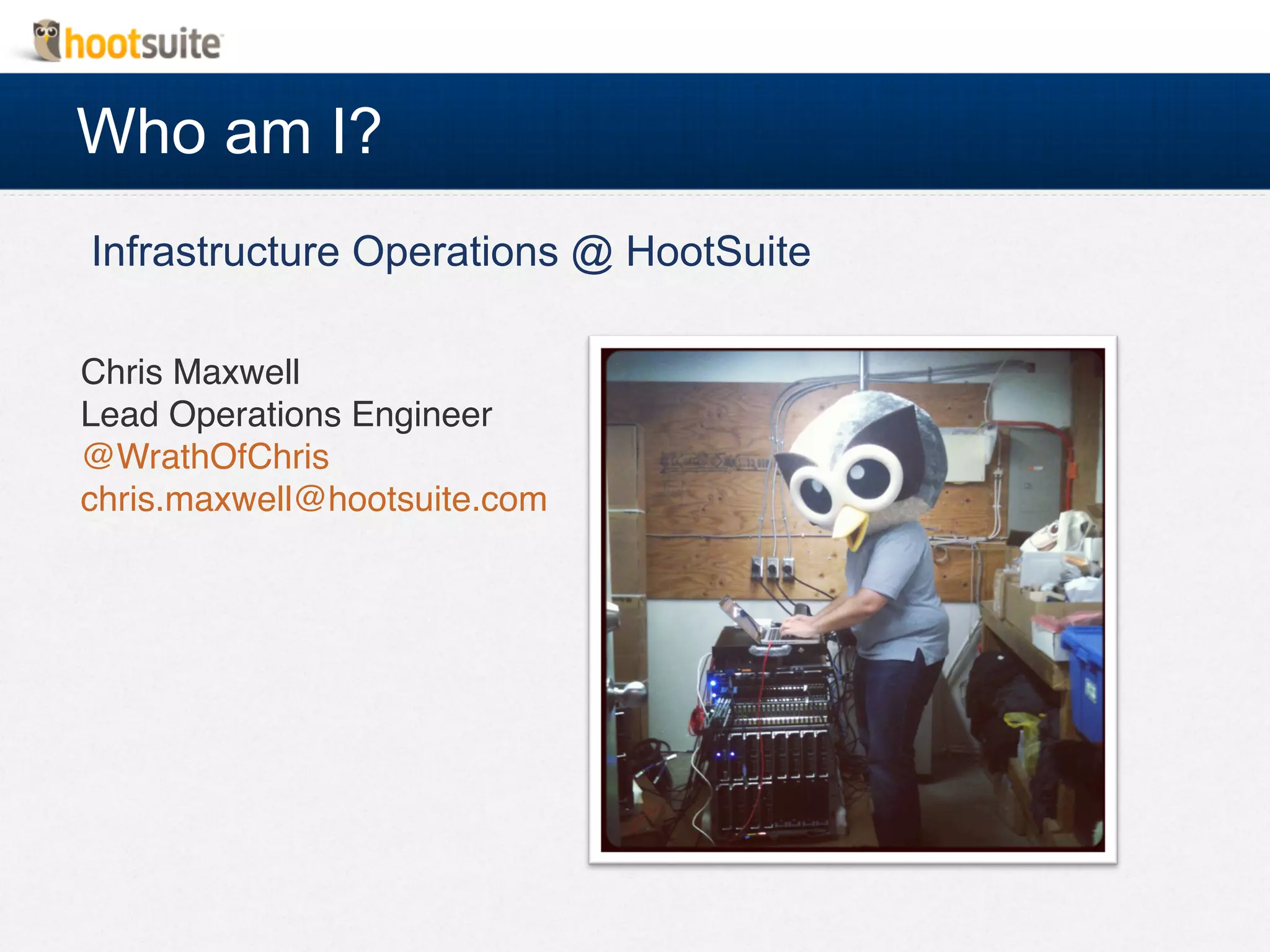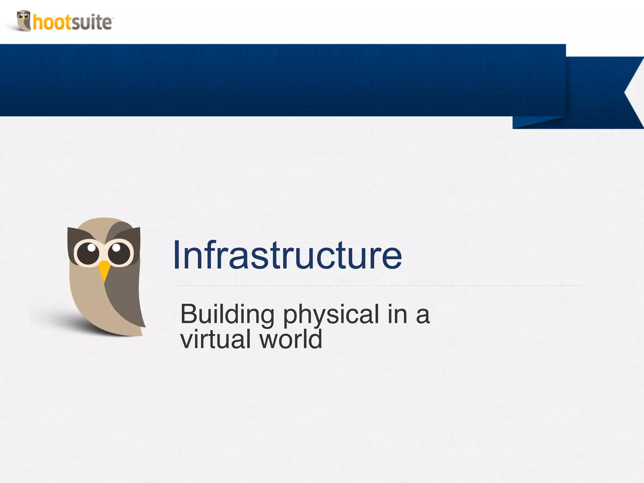 This document summarizes Chris Maxwell's presentation on HootSuite's physical infrastructure. It discusses why HootSuite chose to build a physical datacenter instead of relying solely on cloud services like AWS due to their unique workload needs. It then outlines some of the specific infrastructure choices HootSuite made, including using OpenBSD and Cisco switches for routing and firewalls, CloudStack on VMware, and iSCSI storage. Maxwell emphasizes balancing needs with budget and describes some of the tradeoffs of their choices.