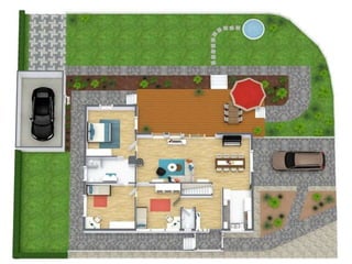 The document discusses various aspects of building planning including proportion, orientation, and site plans. It defines proportion as the visual relationships between objects and spaces that make up a structure. Orientation refers to fixing the direction of a building plan in relation to north. Site plans show the layout of a property including locations of buildings, driveways, walkways, and landscaping. There are 2D and 3D site plans, with 2D being simple diagrams and 3D being full-colored 3D renderings. Building planning aims to arrange various building components systematically to meet functional needs.