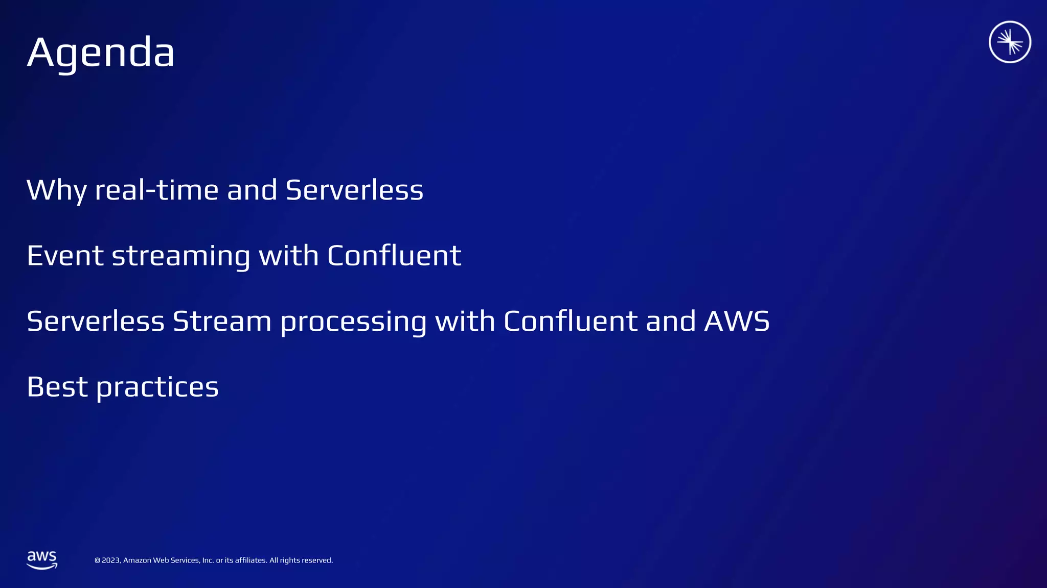 The document discusses building real-time serverless data applications with Confluent and AWS. It provides an overview of real-time data pipelines using event streaming and stream processing. It then discusses using Confluent Cloud for a managed Apache Kafka service and ksqlDB for stream processing. Finally, it reviews options for serverless stream processing using AWS Lambda with Confluent connectors and when to use ksqlDB, Kafka Streams, Kinesis Data Analytics, or Lambda.