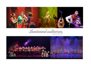 This document provides a case study analysis of the acoustic design of Shantanand Auditorium located in Kuala Lumpur, Malaysia. It begins with an introduction to the auditorium including its background, history, photos and drawings. It then discusses acoustic concepts relevant to architectural design such as sound absorption, reverberation time, attenuation and echoes. The document aims to analyze key acoustic design aspects of the auditorium and provide suggestions to improve its acoustic qualities.