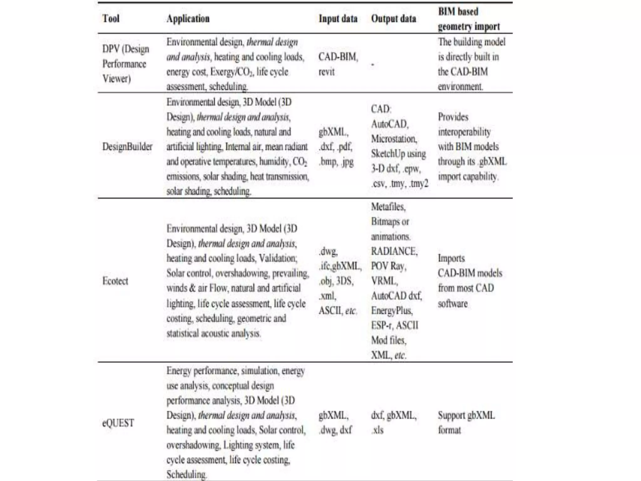 The document discusses building performance simulation, outlining the role of various software tools and their limitations in accurately predicting energy use, compliance with building codes, and optimizing design alternatives. It emphasizes the benefits, such as cost-effectiveness and detail, alongside challenges like uncertainties in real-world applications and the potential for simulation errors. Additionally, it covers HVAC systems, acoustic design, and lighting analysis, highlighting the importance of simulation in enhancing building design and performance.