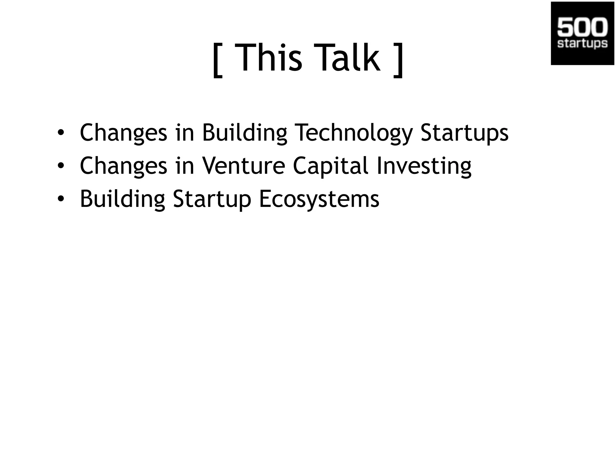 The document discusses changes in building technology startups and venture capital investing. It notes that startups now require less capital to build products and reach customers due to cloud infrastructure and online platforms. Venture capital has also changed with the rise of seed funds, accelerators, and global funding opportunities. The document advocates for a portfolio approach of making many small bets on startups, expecting most to fail but a few to have outsized returns. It outlines stages of investing from product validation to revenue growth. Finally, it discusses how startup ecosystems develop through factors like capital, talent, and successful exits that inspire future entrepreneurs.