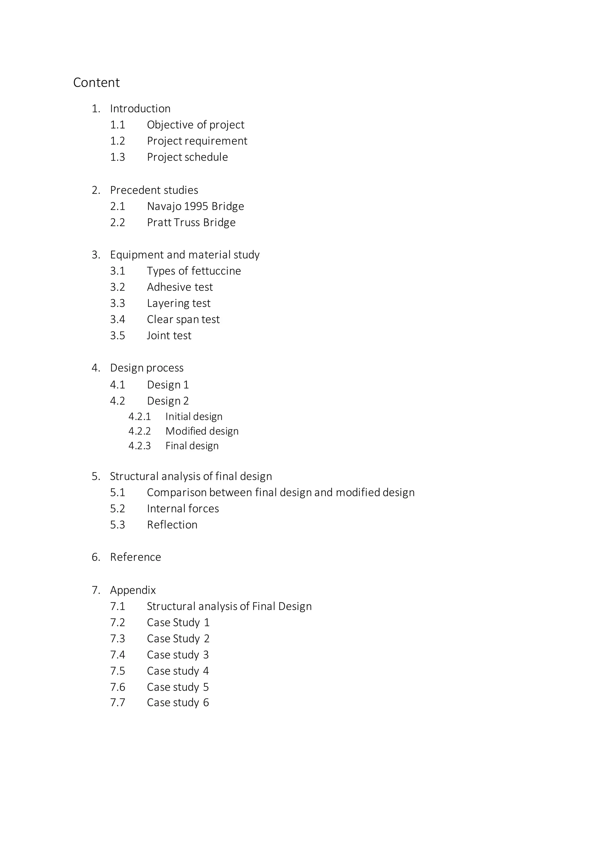 2. Precedent bridge studies and material tests were conducted to inform the design process. Several bridge designs were developed and tested, with refinements made to designs that did not meet requirements.