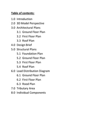 1. The document outlines a project by three students to structurally analyze a two-story bungalow design.