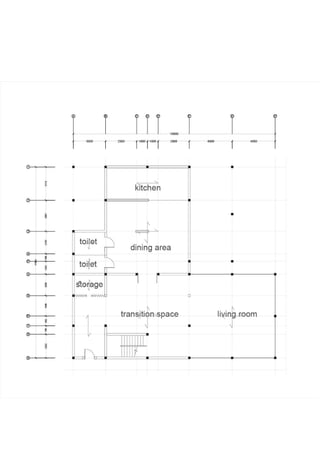 This document summarizes a student project analyzing the structural design of a bungalow. It includes an introduction outlining the project objectives to introduce basic structural design processes and provide a holistic design experience. It then presents the architectural plans including ground floor, first floor, and roof plans. Next, it shows the structural plans and load distribution diagrams for each level. Individual structural components are also analyzed. The purpose is for students to demonstrate knowledge of building structures through structural calculations and basic design proposals.