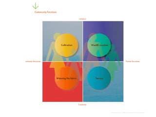 The document discusses the concept of sustainable communities, highlighting the role of informal leaders who are essential yet often invisible to outsiders. It illustrates the positive social impact of the Iu Mien community in the San Francisco Bay Area, including significant decreases in youth detention rates and increases in high school graduation and college enrollment from 2001 to 2008. It concludes by emphasizing that sustainable communities have the capacity for long-term growth and balance among individuals and groups.