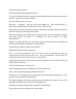 3) The group then had an insight that instead of making people "earn" trust, a better approach is to start by "giving" trust to others without waiting for them to prove themselves worthy.