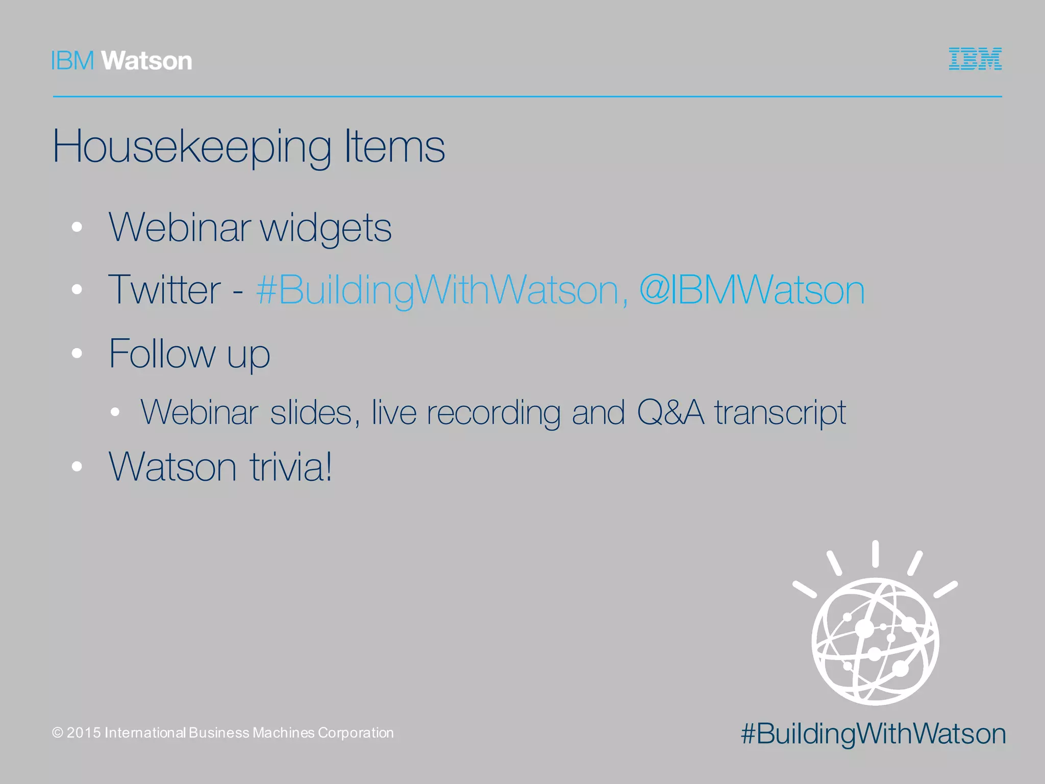 The document details a webinar on building applications with the AlchemyData News API, hosted by IBM's Zach Walchuk. It covers an overview of the API, a sample application that tracks celebrity news, and provides example calls and responses. The session includes opportunities for follow-up discussions and further learning resources related to IBM Watson services.