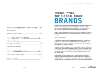 The document serves as a comprehensive guide for small businesses on building a strong brand identity. It outlines the importance of branding, its benefits, and provides actionable steps for defining brand positioning, developing visual identity, and maintaining brand integrity. Additionally, it emphasizes the necessity of professional design and consistent execution across all customer touchpoints to enhance reputation and customer loyalty.