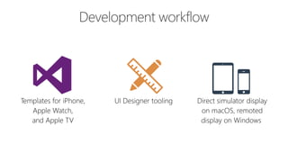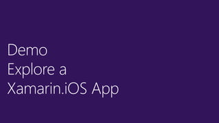 The document outlines a presentation on creating iOS applications using Xamarin, covering topics such as UI design, MVC architecture, and the advantages of a shared C# codebase for native iOS performance. It explains Xamarin.iOS's capabilities, API coverage, and development tools available on both macOS and Windows. The presentation encourages developers to start with Xamarin through self-guided courses and available samples.
